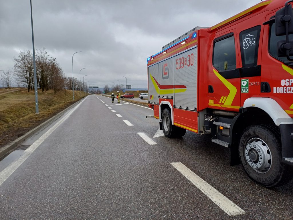 Dnia 24.02.2026 r. o godz.09:33 nasza jednostka została zadysponowana do plamy oleju na ul K.K.Jagiellończyka w rejonie węzła autostradowego. Nasze działania polegały na zabezpieczeniu miejsca zdarzenia i wraz z zadysponowana jednostką z Borku Wielkiego przy pomocy neutralizatora sintan zebrano ślad ropopochodny.
